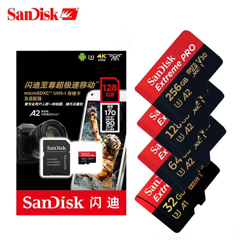 Addition Information of Original SanDisk Extreme Pro Micro SD Card up to 170MB/s A2 V30 U3 64GB 128GB 256gb Sandisk TF Card Memory Card With SD Adapter