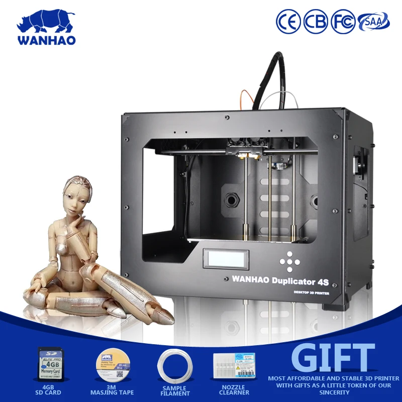 Buy Wanhao D4S 3D Printer,Wanhao Duplicator4S Metal Frame reprap kit, DIY 3D Printer machine with dual-extruder with free filaments and You will Save USD 0 or 0% %, Because You Just Pay for 399.00 not Full Price for 399.00